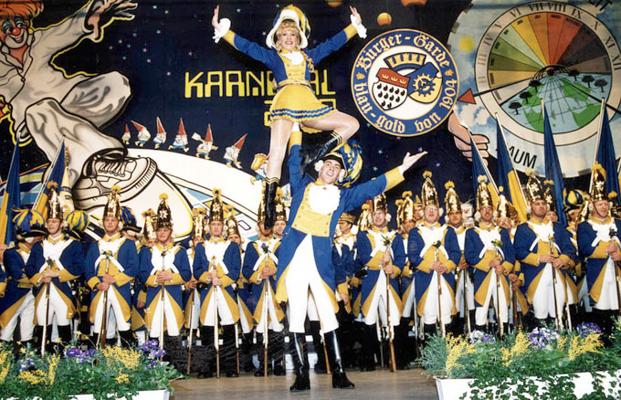 Einen Spitzenplatz im Kölner Karneval hat die Bürgergarde "blau-gold" erobert, die in dieser Session ihren 100. Geburtstag feiert. Aus dem kölschen Fastelovend und aus dem Spektrum der Traditionskorps ist die schmucke Garde nicht mehr wegzudenken. Sie bricht alle karnevalistischen Rekorde, liefert Traum- und Märchenhaftes, fiert knatschverdötschten Fastelovend. Dabei ist ihr Erfolgsrezept ganz einfach: vorbildliche Kameradschaft. Jeder hilft jedem, und es gibt keine Standesdünkel. Köln wäre ohne das prächtige Korps mit seinen tanzenden Gardisten, dem adretten Tanzpaar, den Offizieren und seinen klangstarken Musikkapellen um einiges ärmer.